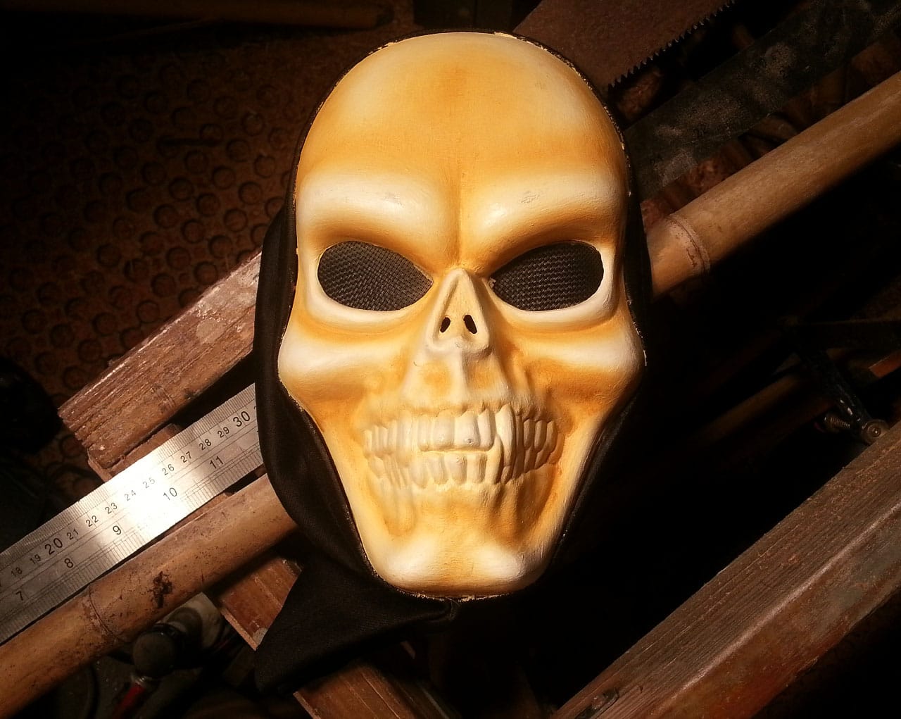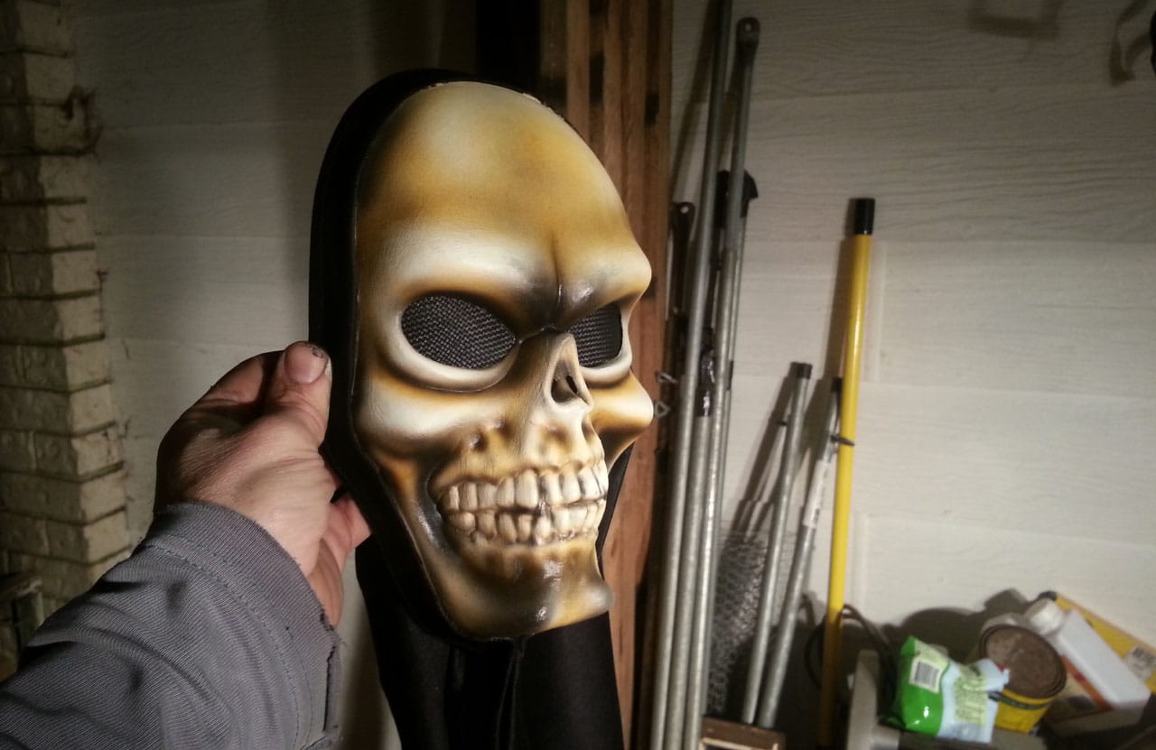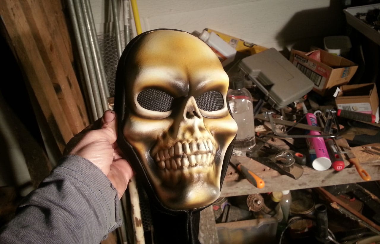 In 2015, I was asked by my friend Stevie if I could airbrush a mask used for the character of Death in the stage adaptation of Terry Pratchett’s Mort.