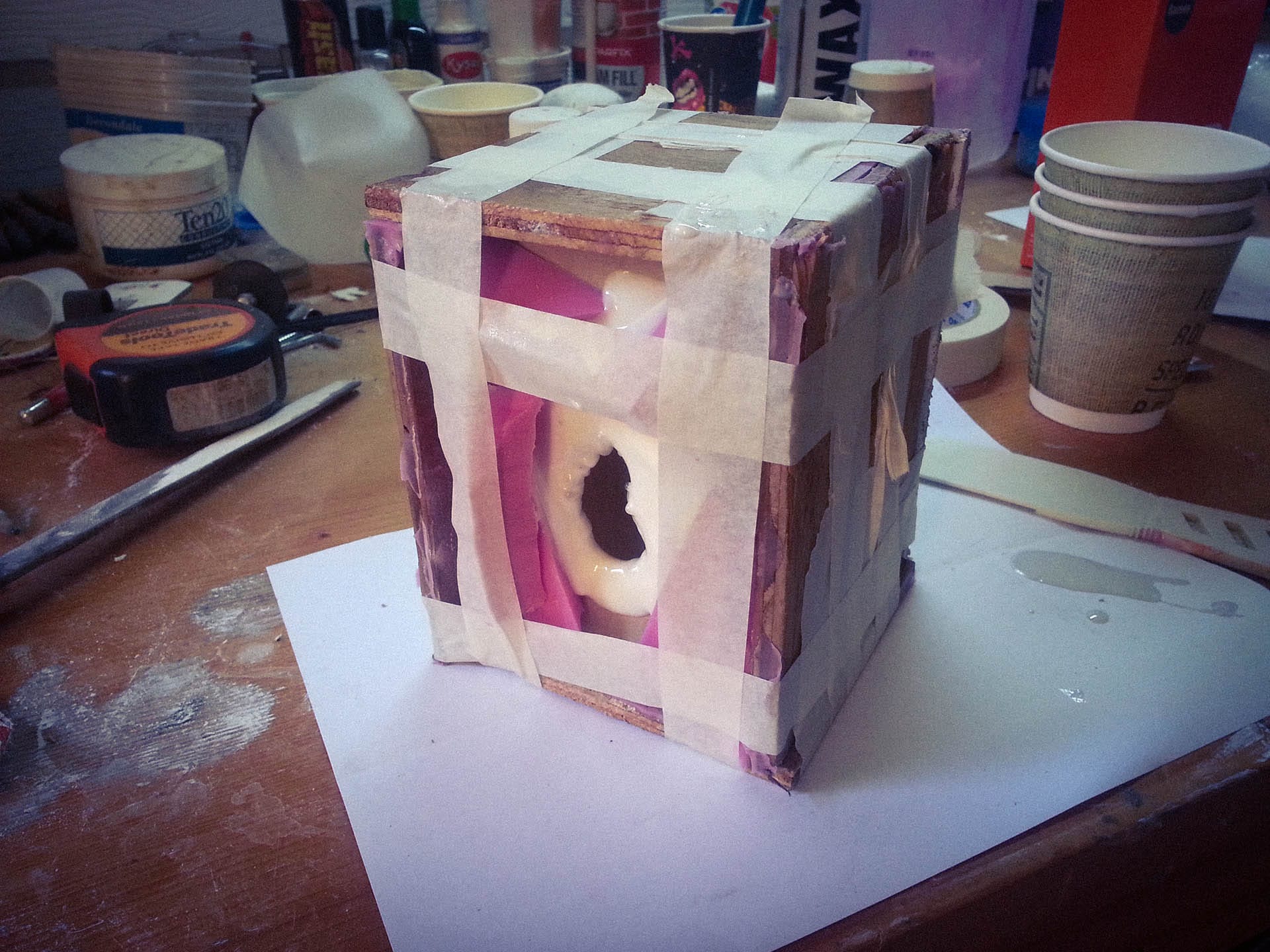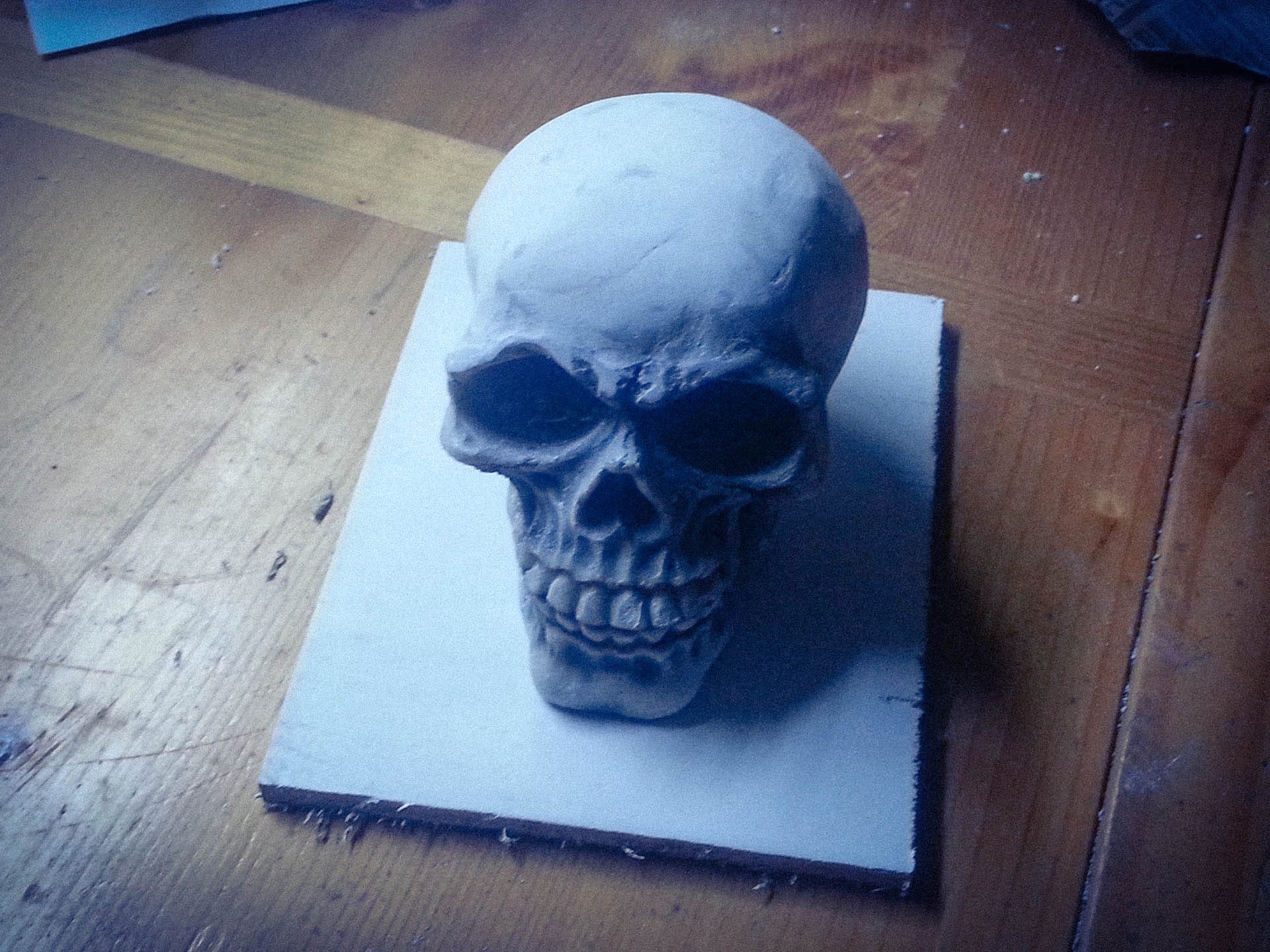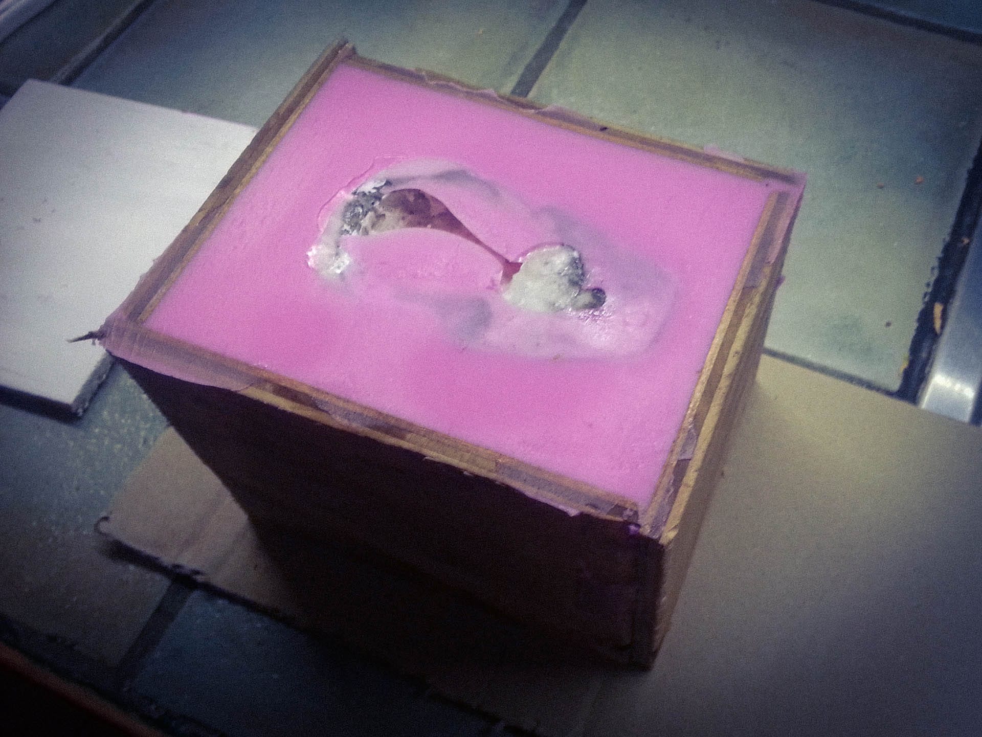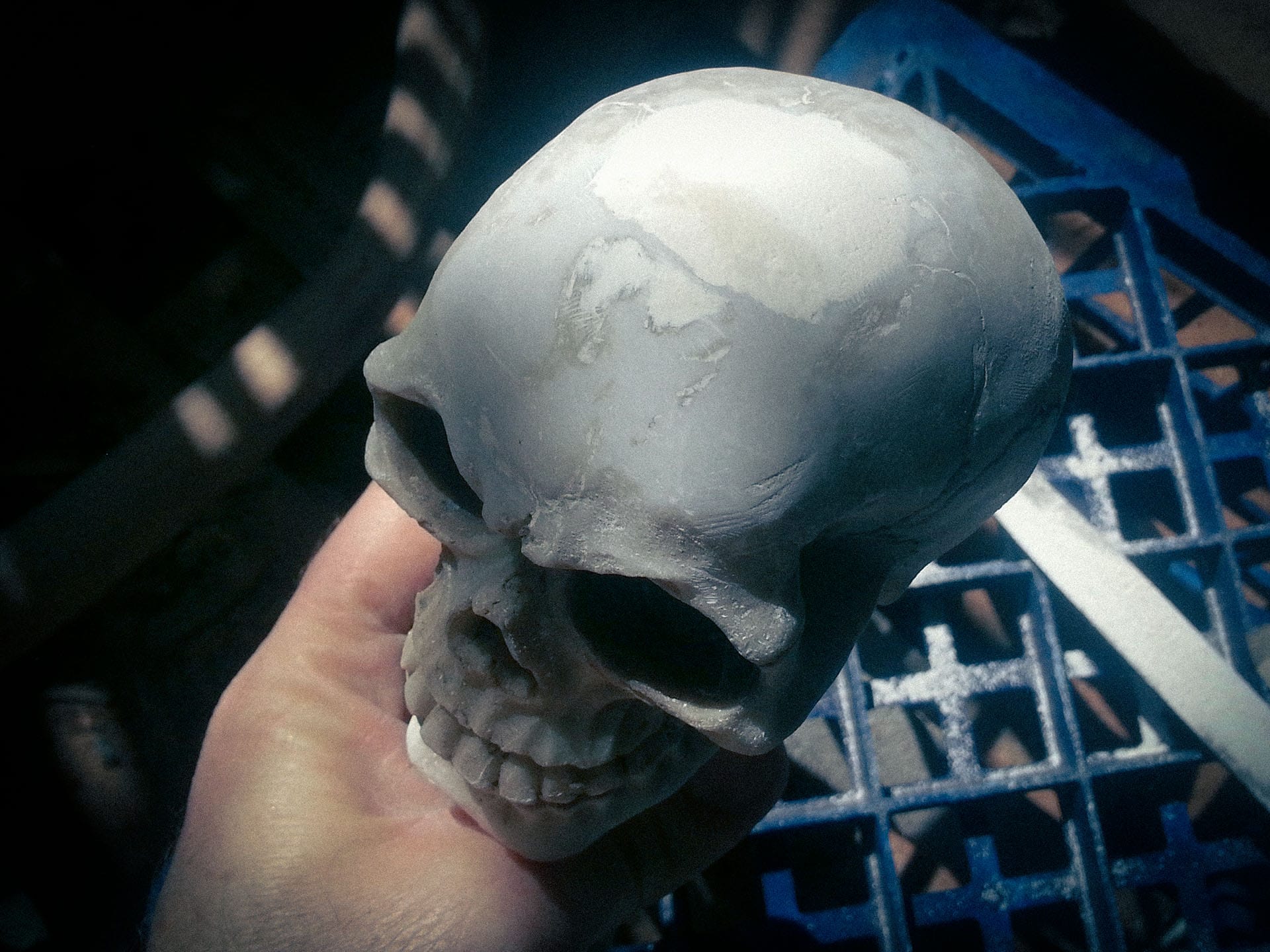 I then built a tiny box just big enough to fit the skull and used Pinkysil to make a mould of it. Pinkysil is a silicone-based two-part casting product from Barnes. It’s great for copying items like this, and I still have the mould to this day, although I only ever used it that one time.