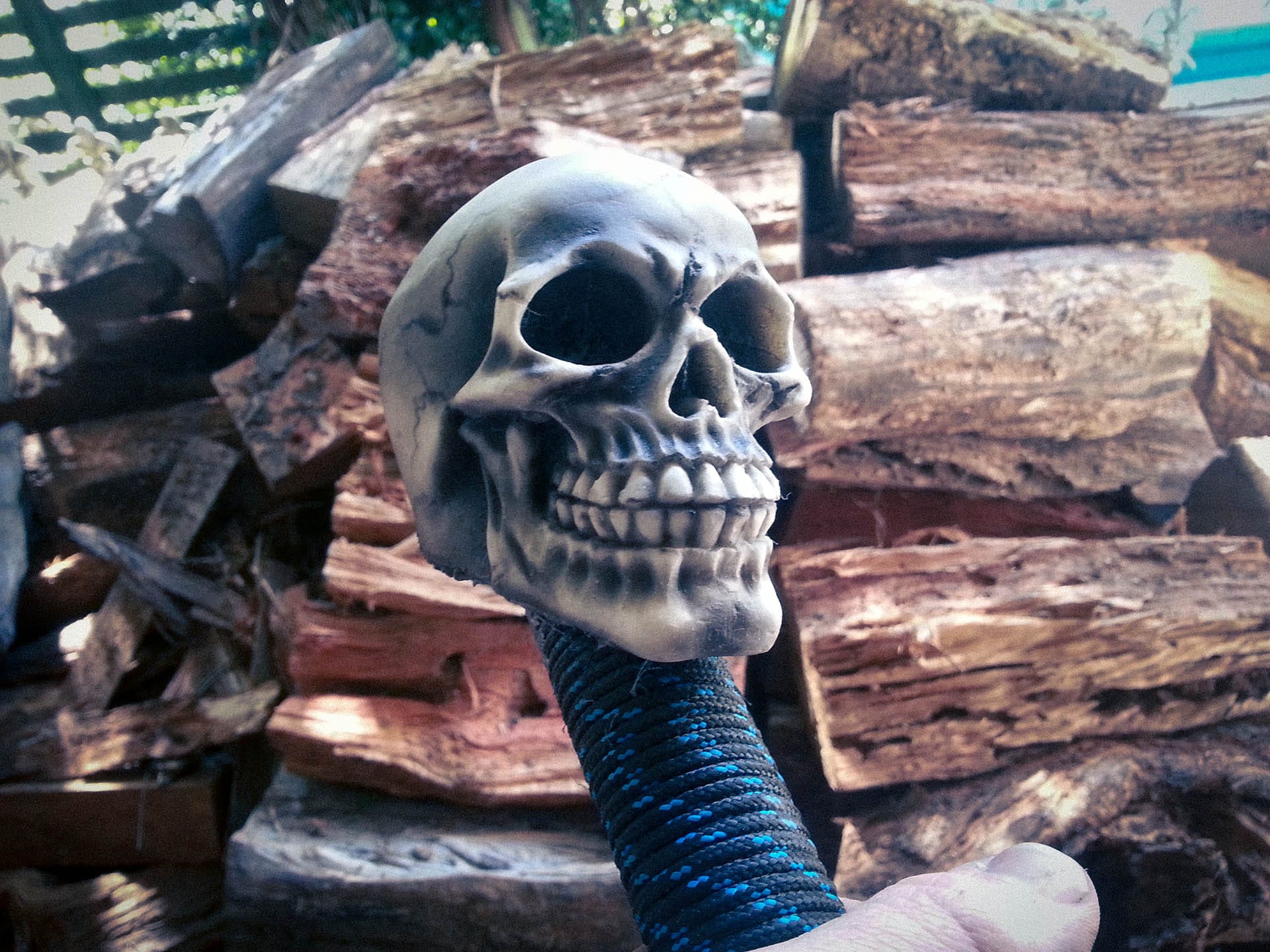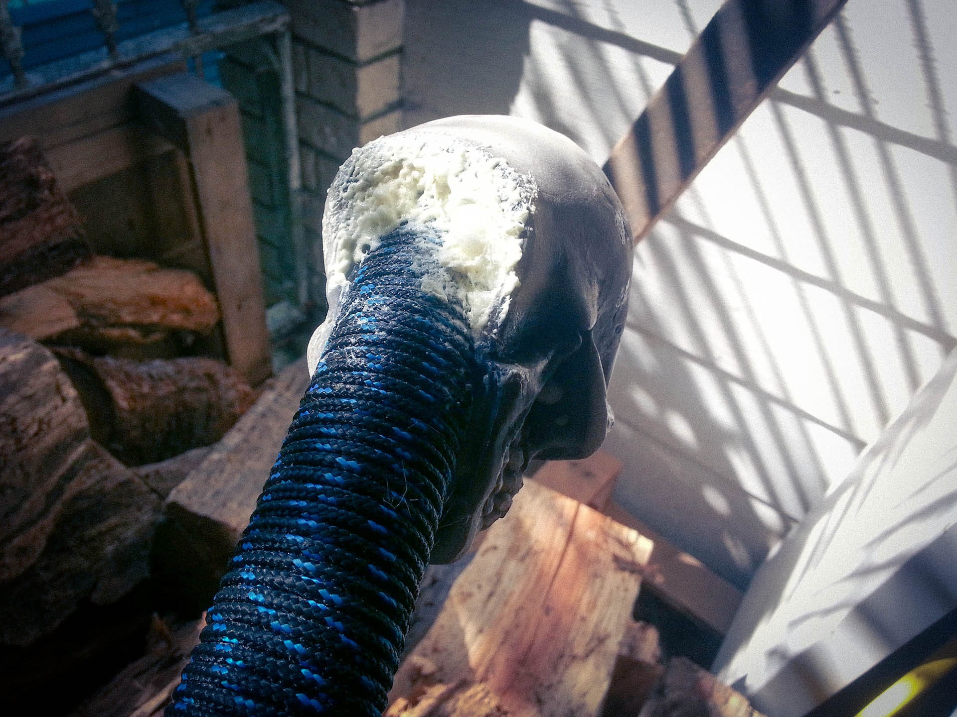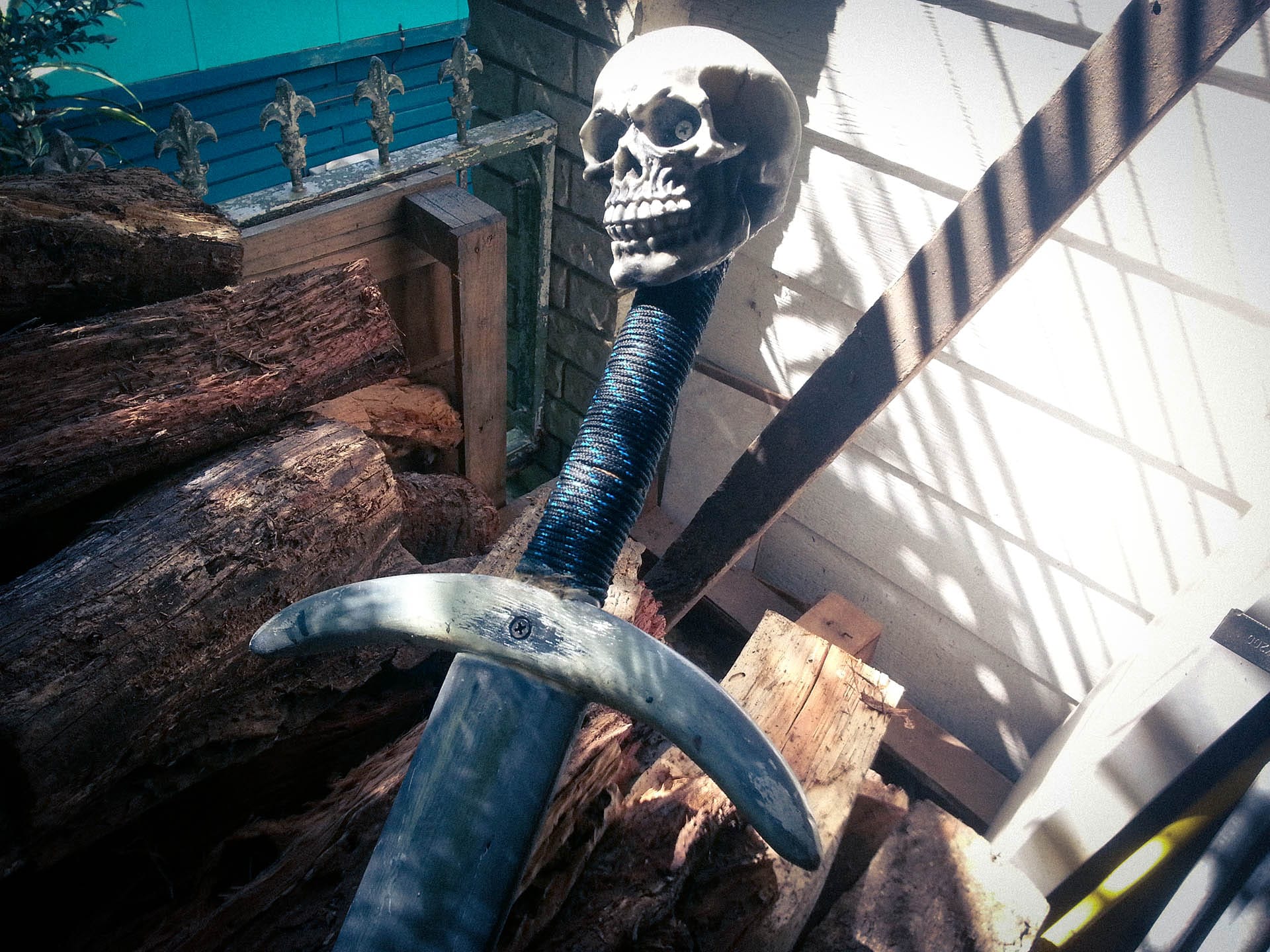 The result? A shattered $12 cheap shop skull pommel. I had originally weighted it with plaster filler and thought, “This will do the trick so long as it doesn’t hit the deck or anything.” Lol.