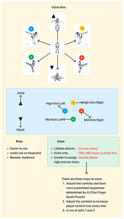 Initially, there would be only one mini-game: a basic endless fighting game of skill. Cho would stand in the middle of the screen while enemies (his classmates) approached from both sides. As he defeated them with simple kicks, they would fall to the floor and begin piling up behind him. Once that worked, the plan was to expand it to four selectable mini-games. Each would gradually increase in speed and difficulty until defeat, with a high-score system encouraging replayability.