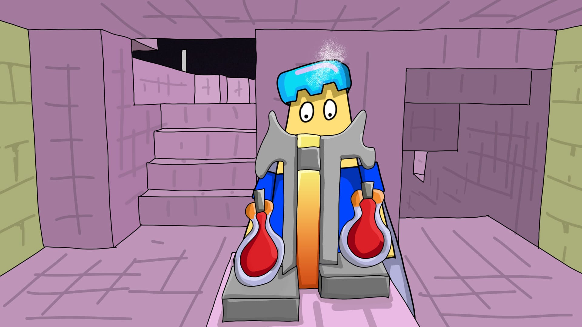 Using these as a guide, I then had to draw the backgrounds for each scene. The storyboard had been drawn from memory, so to make the scenes accurate, I spent a lot of time in Minecraft capturing screenshots that would work. This took far longer than expected, as it had to be treated like a film set.
