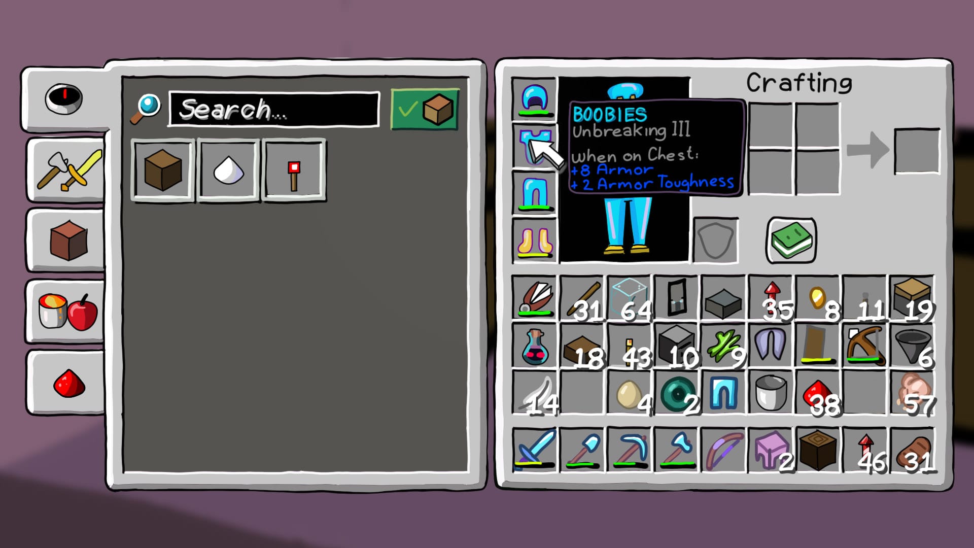 A sneaky 3 frame joke briefly flashes on screen in reference to childish naming of equipment