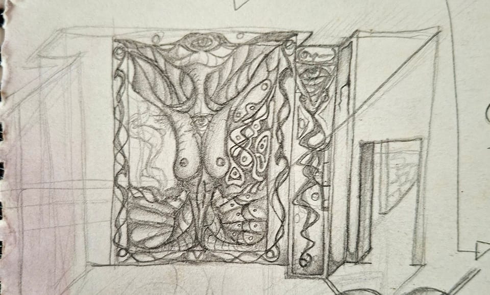 The place was still mid-renovation — bare walls that needed paint — and I suggested I paint the room with artwork instead. They agreed, which honestly surprised me. The walls, door, and even the inside of the cupboards ended up covered in airbrushed pieces. The main wall was never finished before I moved out.